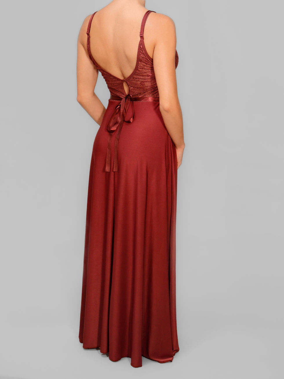 Camisola de comprimento longo com detalhes em renda, ideal para quem preza por sofisticação e fluidez.